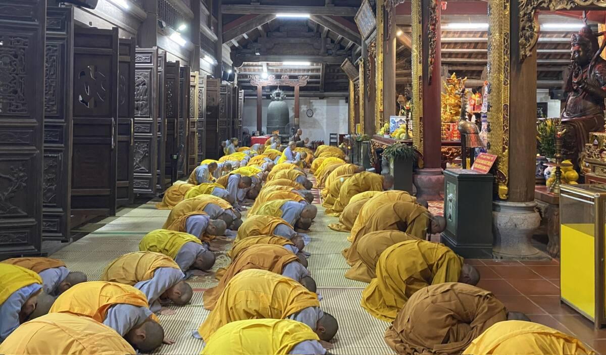 Thượng tọa Thích Thanh Huy- Phó ban KTTC TƯ, UVTT kiêm Trưởng Ban KTTC BTS GHPGVN tỉnh Nam Định, Trưởng BTS GHPGVN huyện Vụ Bản cùng chư Tăng- ni hành giả An cư tại Trường hạ chùa Tiên Hương đã trang nghiêm thành kính tổ chức lễ dâng hương tưởng niệm, tụng kinh cầu siêu, cầu nguyện cho hương linh của cố Tổng Bí thư được sinh về cảnh giới an lành.