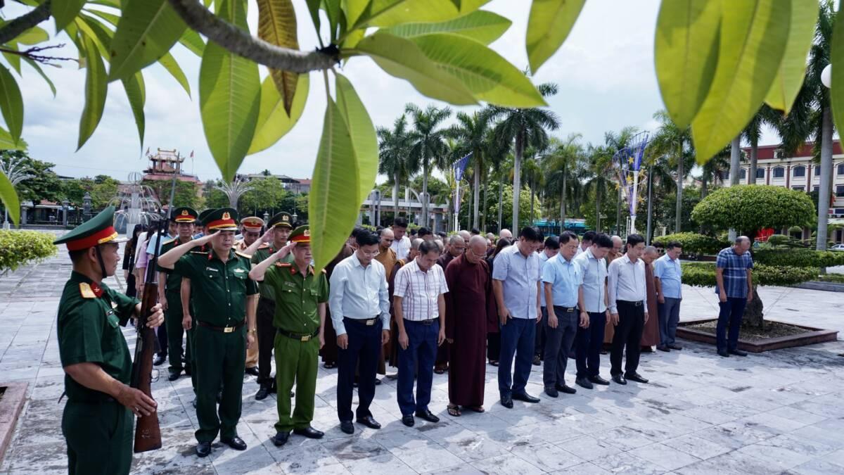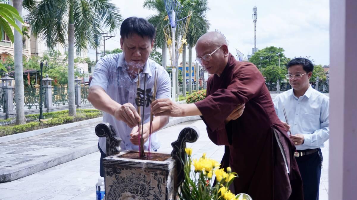 Hòa thượng Thích Quảng Hà- Phó Chủ tịch HĐTS, Trưởng Ban Trị sự GHPGVN tỉnh Nam Định, Trưởng BTS Phật giáo huyện Ý Yên; ông Đinh Đức Tuyến- UV BCH Đảng bộ tỉnh, Bí Thư huyện ủy, Chủ tịch HĐND huyện Ý Yên; ông Nguyễn Huy Liệu- Phó Bí thư Thường trực huyện ủy; ông Nguyễn Sinh Tiến- Phó Bí thư huyện ủy, Chủ tịch UBND huyện; Cùng chư Tôn đức tăng ni, quý vị lãnh đạo huyện Ý Yên đặt vòng hoa và dâng hương tại đài tưởng niệm anh linh các anh hùng liệt huyện Ý Yên.