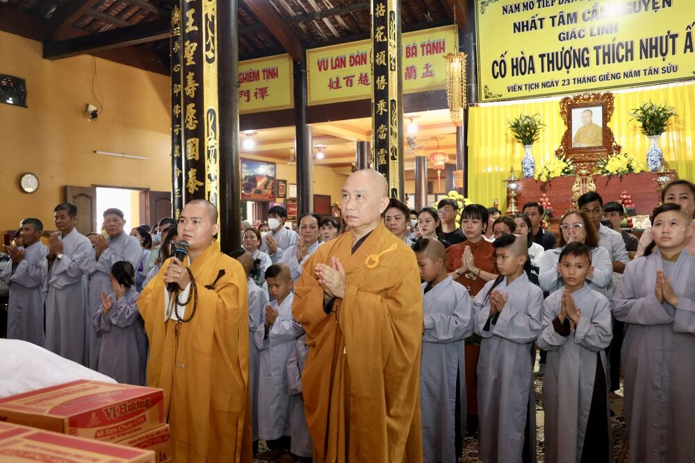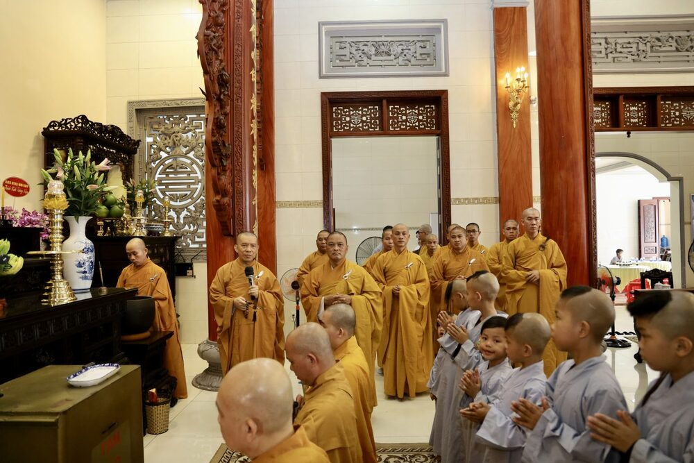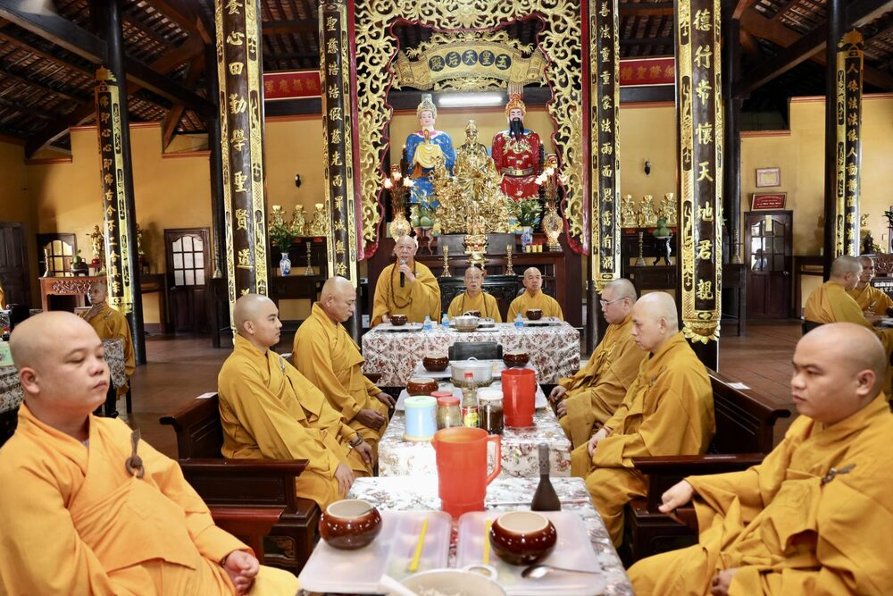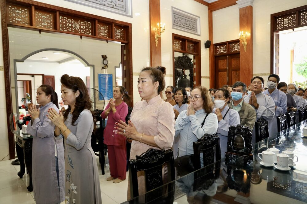 Tiếp đó, Trưa ngày 13/04/2022 Phái đoàn đã đến trường hạ Tổ đình Hội Khánh (phường Phú Cường, TP.Thủ Dầu Một), ĐĐ. Thích Nguyên Chiếu đã hướng dẫn quý thiện nam tín nữ Phật tử đảnh lễ Tam bảo, vấn an sức khỏe chư Tôn đức Ban Chức sự hạ trường, chư Tăng hành giả an cư. Đồng thời tác bạch cúng dường tịnh tài, tịnh vật giúp chư hành giả đủ điều kiện an tâm tu học trong ba tháng An cư Kiết hạ PL.2566 – DL.2022.